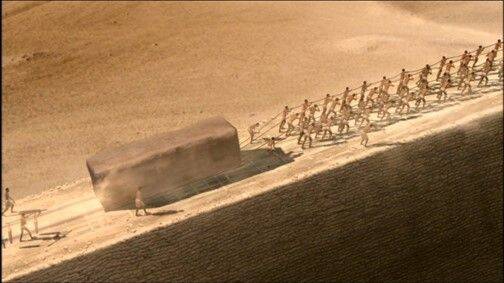 Eerst dachten onderzoekers dat heel veel slaven domweg een stuk steen naar boven sleepten op balken,